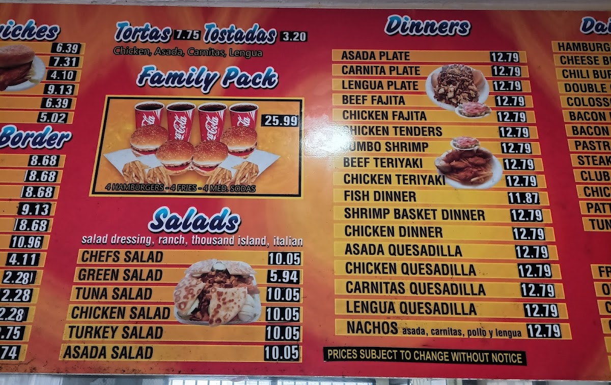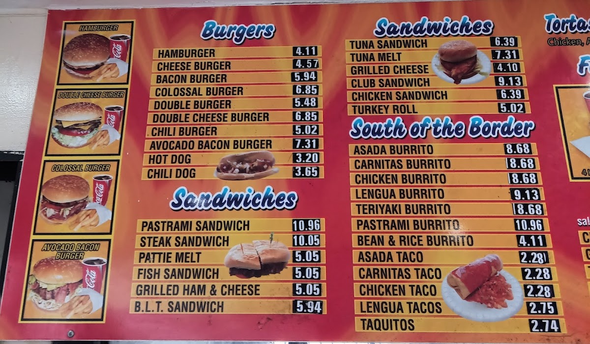 “ Firstly, great food for an inconspicuous location. I like that they had a variety of food. We stayed inside to eat. We got 2 avocado bacon burger specials and the club sandwich special for 43. I enjoyed my burger, fries, and horchata. My mom was loving her club sandwich. They don't skimp out on the bacon or avocado. We also got some aguas frescas (horchata and tamarindo) and a soda which were all great. I would definitely come back for a quick bite. The only downside is the atmosphere. The building and area isn't the most appealing, but I just came for the food so it didn't bother me. ”
